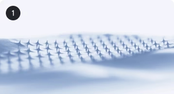 While traditional patches lay flat on the surface of the skin,these ultra thin micro-darts gently penetrate theskin, infusing serum for deeper delivery.